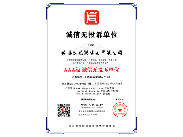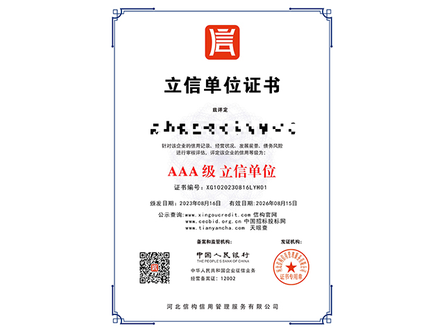 AAA级立信单位认证是对企业信用状况的高度认可,表明该企业具有极高的信用度和良好的还···