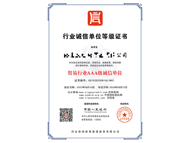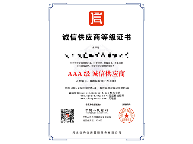 AAA级诚信供应商认证是最高级别的认证,代表着供应商在诚信度和可靠性方面表现出色。这···