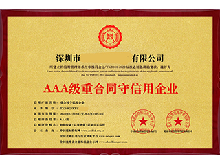 AAA级重合同守信用企业认证是指企业在商业活动中严格遵守合同约定,诚实守信,履行合同义务的认证评级。这种认证通常由相关的行业协会、商会或政府机构进行评定和颁发。